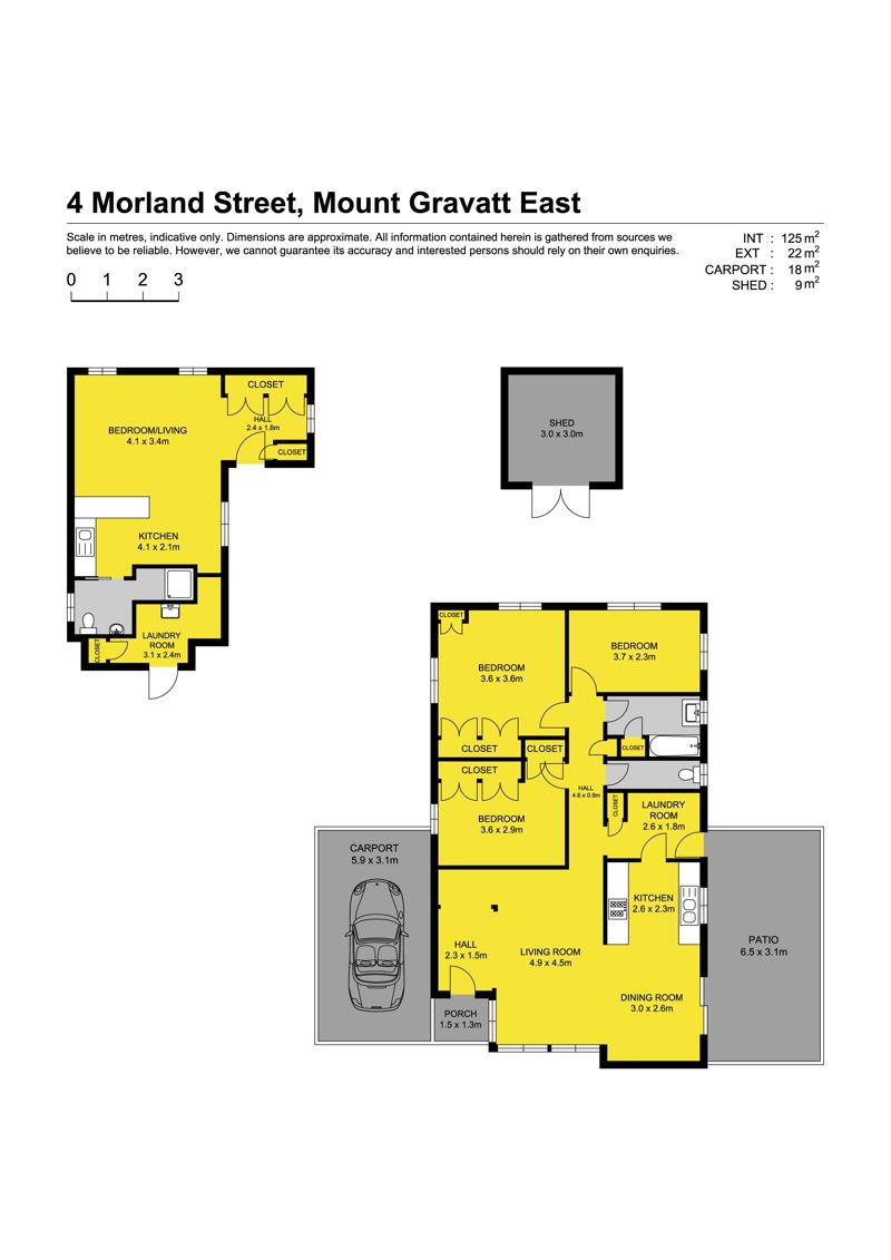 3 bedrooms, 2 bathrooms and 3 car garage spaces, and 1 granny flat.